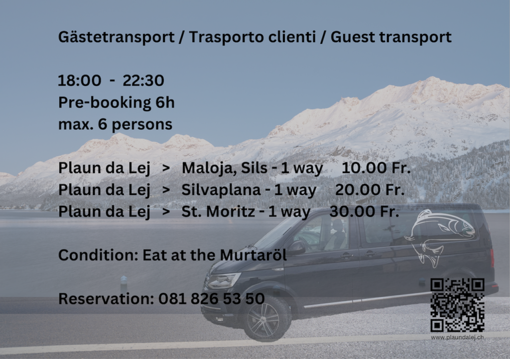 Die nächstgelegenen internationalen Flughäfen befinden sich in Zürich und Mailand. Das Plaun da Lej-Resort kann von Zürich Flughafen mit dem Auto (ca. 2 ½ bis 3 Stunden) oder mit der Bahn (3 ¾ Stunden) erreicht werden. Von Mailand aus empfehlen wir die Anreise mit dem Auto (ca. 3 Stunden).